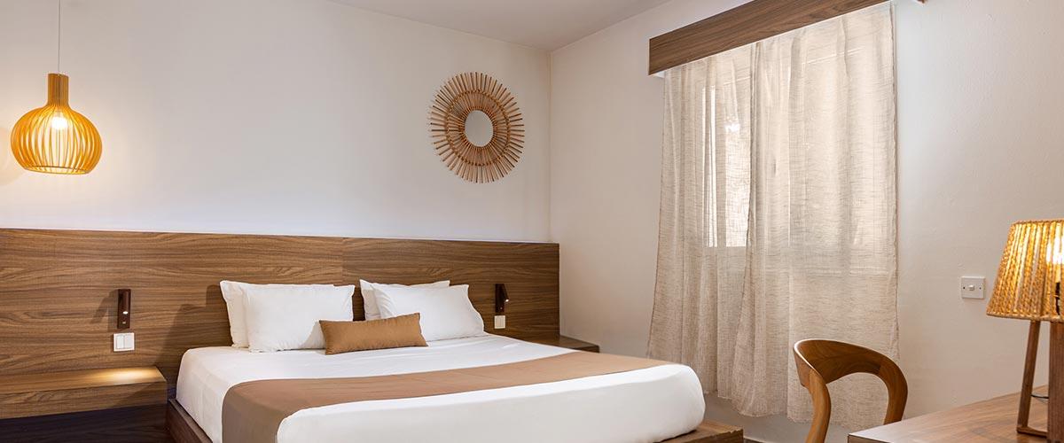 This spacious suite offers an elegant and comfortable retreat, featuring two separate bedrooms and a living area for privacy and convenience. Designed with contemporary décor, soft lighting, and refined details, it creates a relaxing and welcoming atmosphere. The suite opens onto a balcony with a stunning sea view, while the pool-facing aspect adds to the serene ambiance.