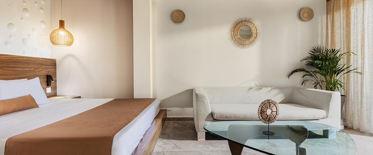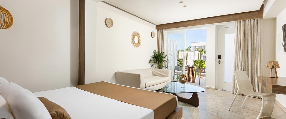Step into sleek comfort and contemporary style in a space designed to offer a relaxing retreat with stunning views of the shimmering pool. These rooms are located on the ground floor and have access to a patio.