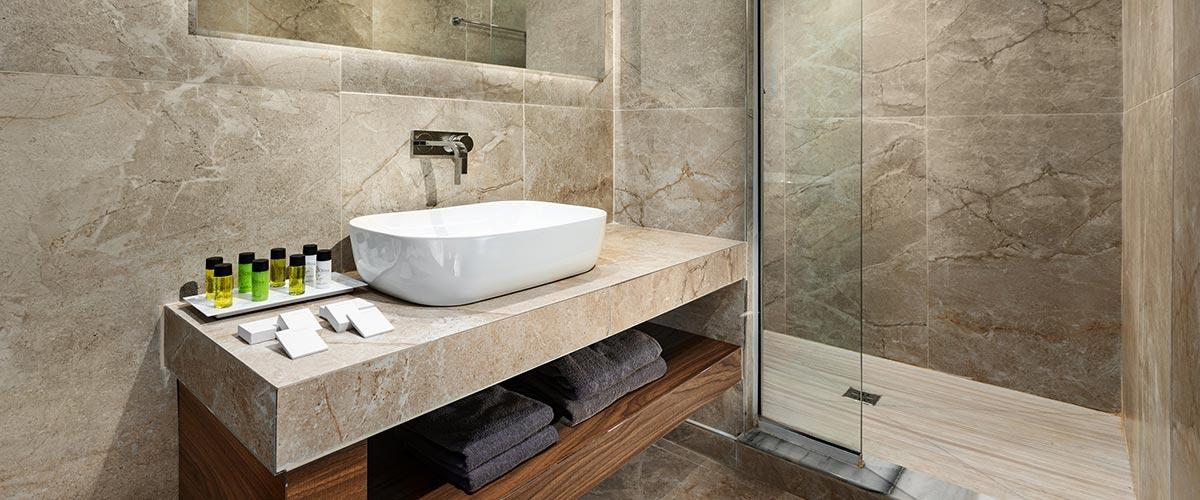 - Marble spa bathroom with chromotherapy, built-in 50x50cm pressurized rain shower cabin with jacuzzi jets, branded toiletries, bathrobes and slippers