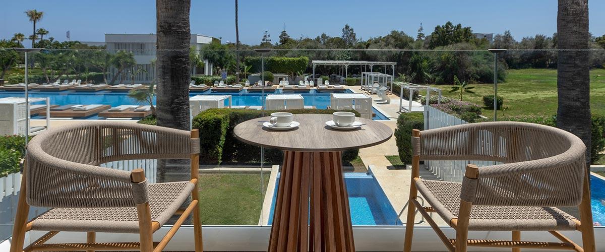 Experience contemporary elegance in this spacious room, featuring a separate bedroom and living area that provide the perfect balance of comfort and style. Enjoy serene views of the pool, while ambient lighting and refined décor create a tranquil and inviting atmosphere. A French balcony or private balcony offers the perfect spot for relaxing mornings or unwinding in the evening.