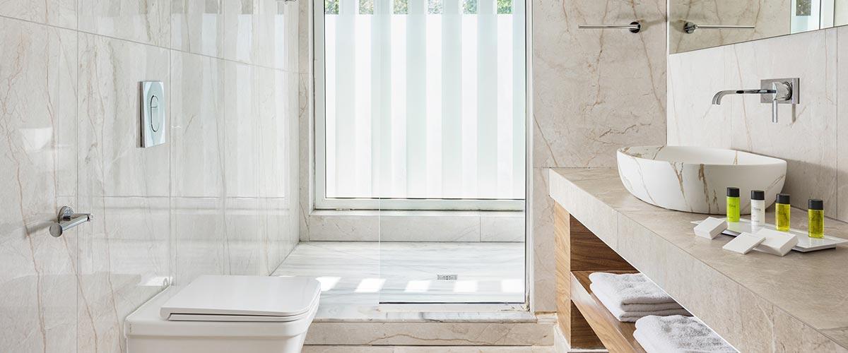 - Marble spa bathroom with chromotherapy, built-in 50x50cm pressurized rain shower cabin with jacuzzi jets, branded toiletries, bathrobes and slippers